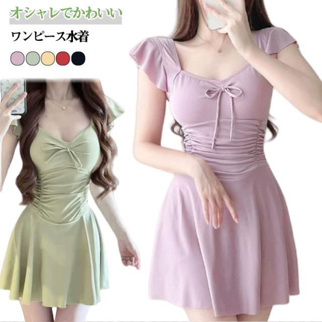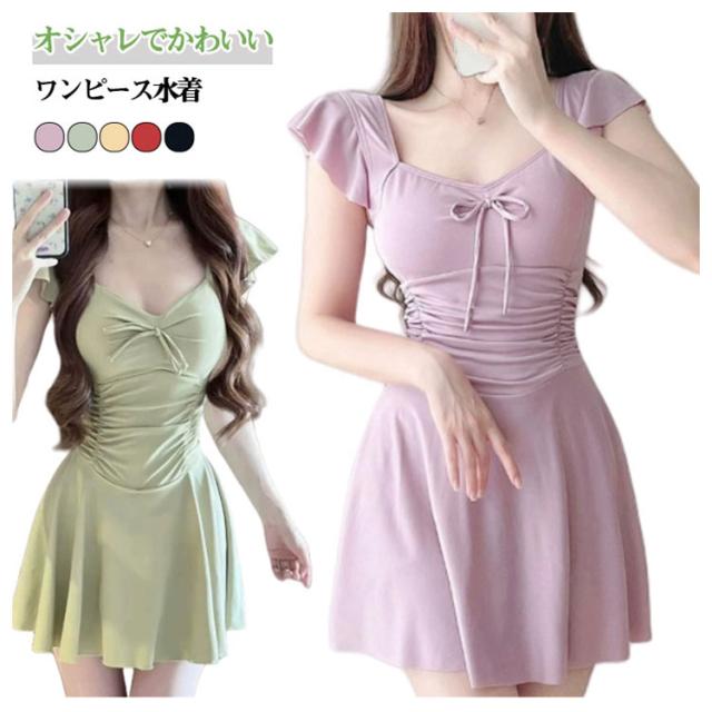体型カバー水着 レディース 大きいサイズ 水着 カバーアップ みずぎ フレアスカート フリル ワンピース オールインワン 露出控えめ ママ水着 お洒落 ワンピース エレガント 水着 20代 30代