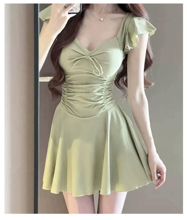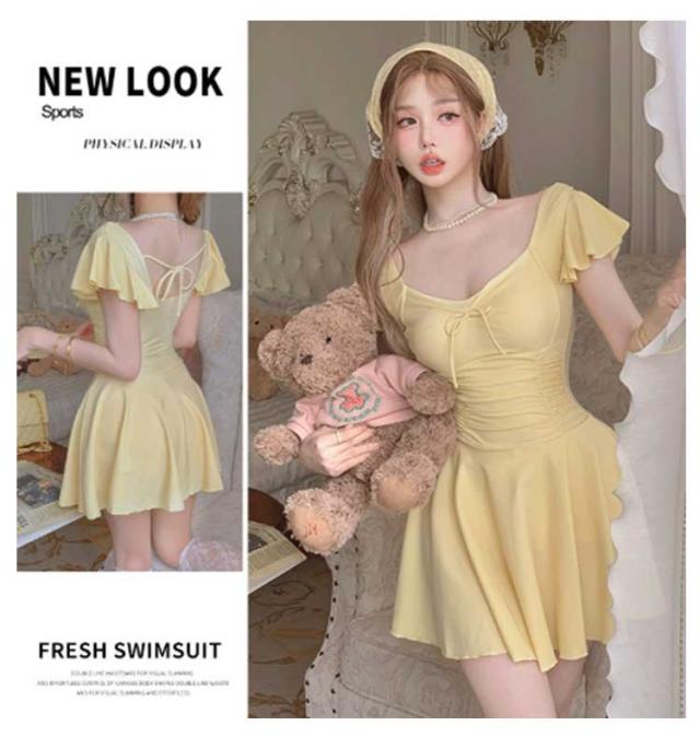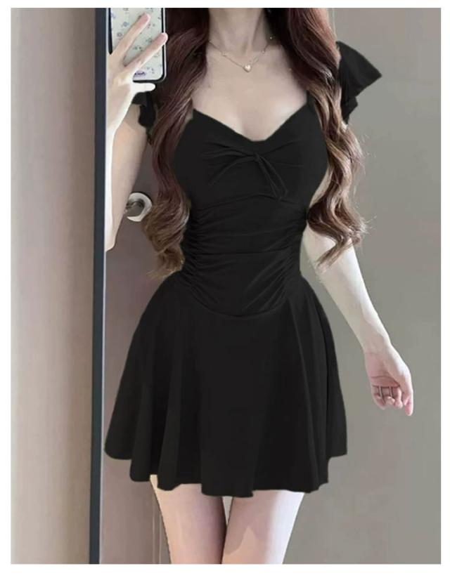 | オシャレでかわいいワンピース水着★ 上品キレイめスタイルで大人可愛くキマる★ 絶妙な長さのフレアスカートが気になる太ももをしっかりカバー。脚長効果も期待できます。 | |