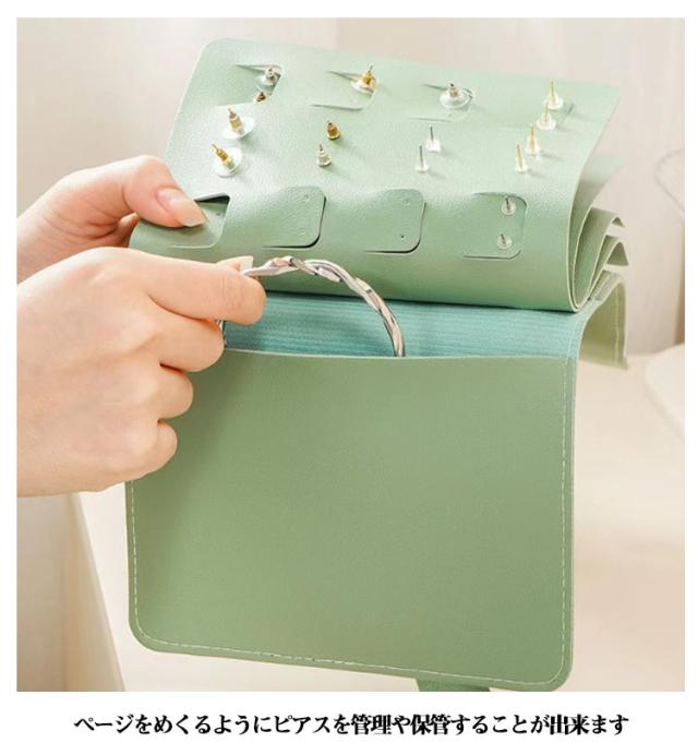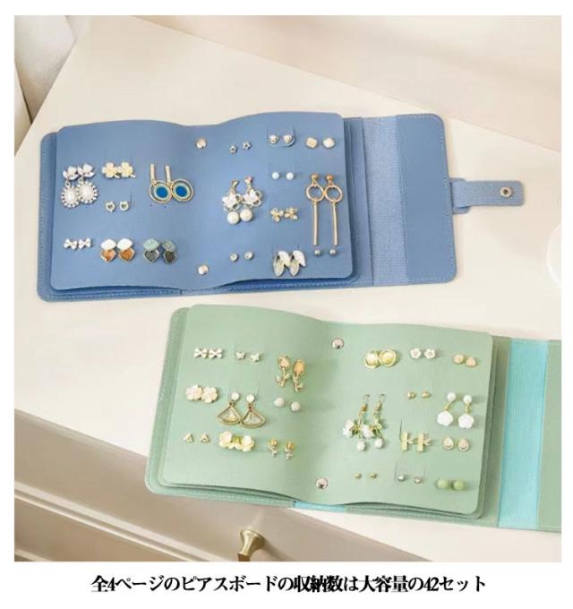 | ピアスケース ページをめくるようにピアスを管理や保管することが出来ます 全4ページのピアスボードの収納数は大容量の42セット 撥水加工生地で汚れにくい | |