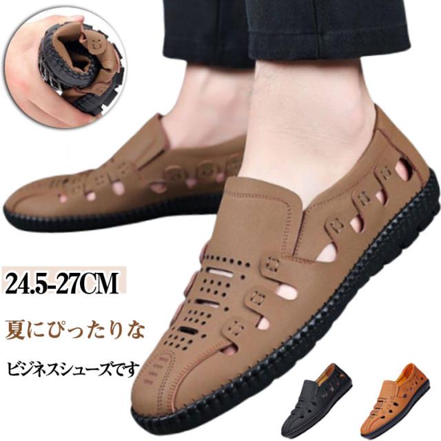 ビジネスシューズ メンズ ビジネスシューズ スリッポン ビジネスサンダル カジュアル 蒸れない 男性用 滑り止め 通気性抜群 柔らかい 通気性 軽量 簡単着脱 オフィス 事務室 革靴