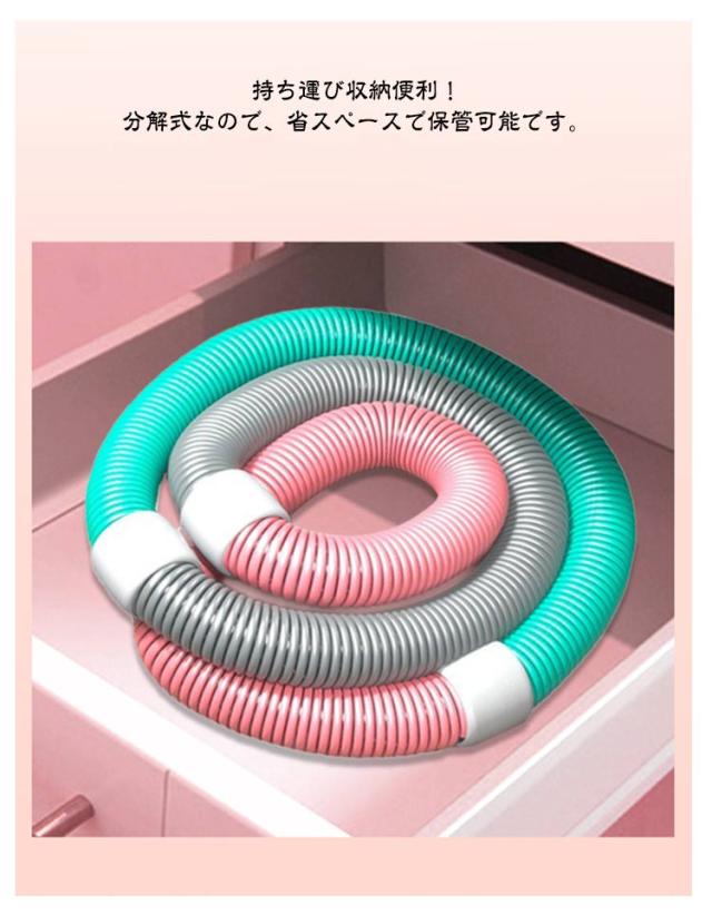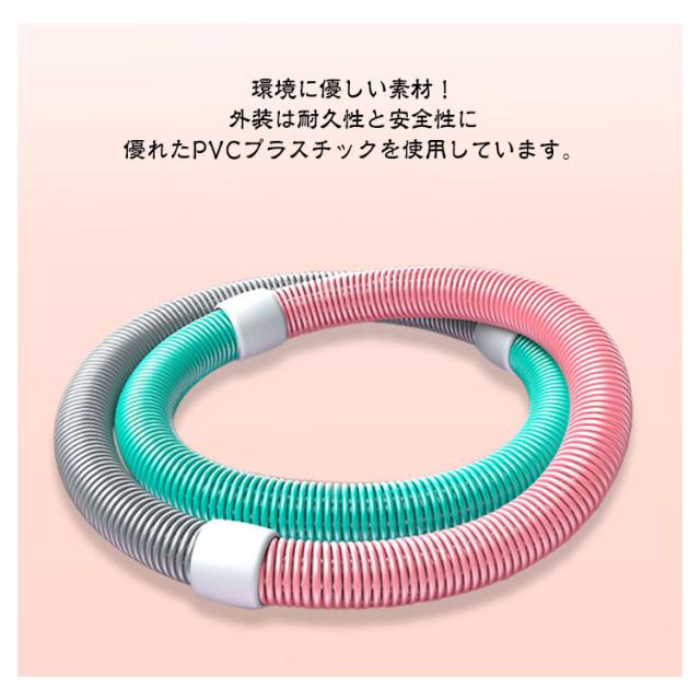 | ソフトフラフープ。低騒音設計!静音スプリング構造により、室内使用でも音が気になりにくい設計です。 しっかり加重!加重タイプで、通常のフラフープよりも効率よくカロリー消費と体幹トレーニングができます。 高弾力スプリング!内部には高弾性の合金スプリングを使用し、回転時の反発力が強化されています。 環境に優しい素材!外装は耐久性と安全性に優れたPVCプラスチックを使用しています。 持ち運び収納便利!分解式なので、省スペースで保管可能です。 | |