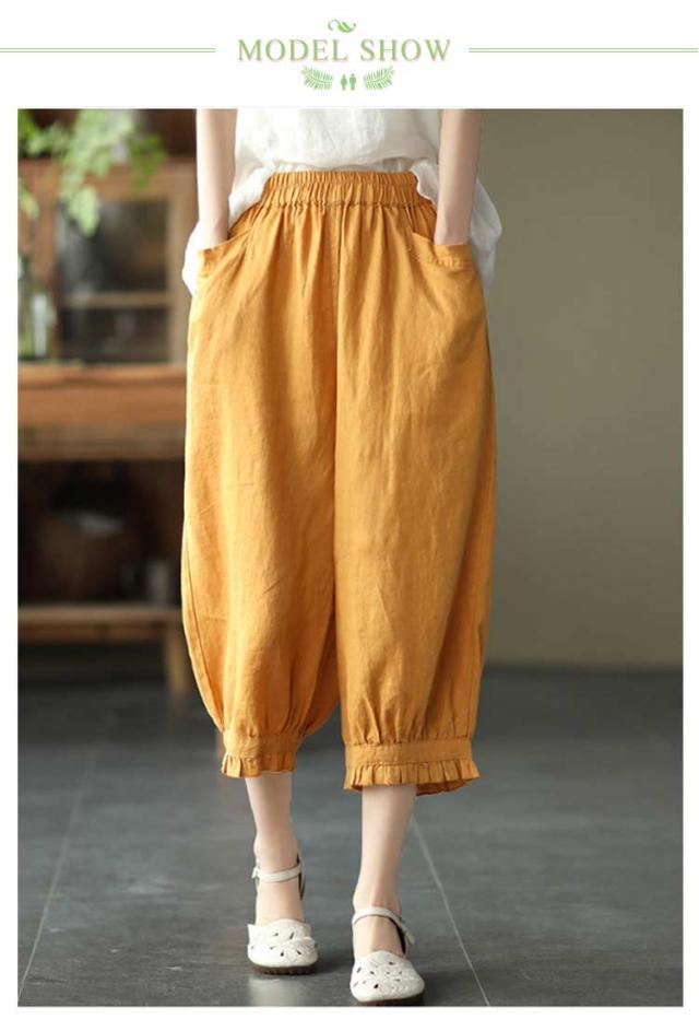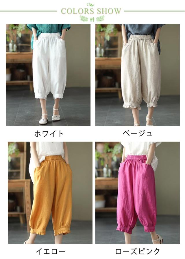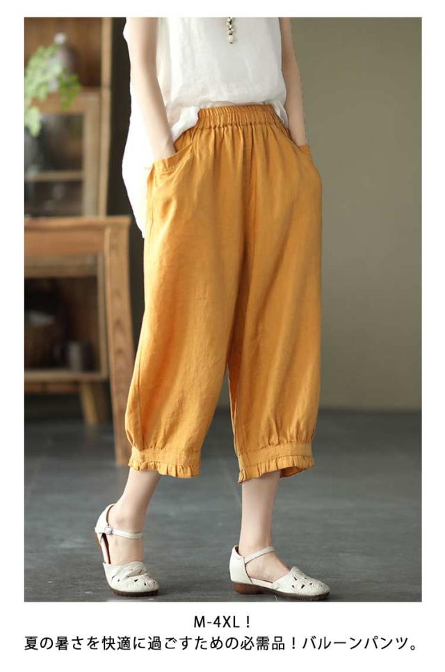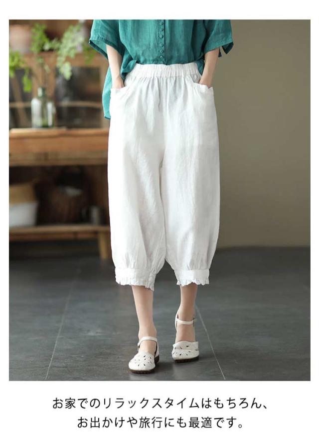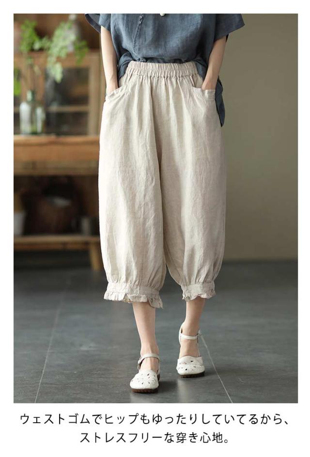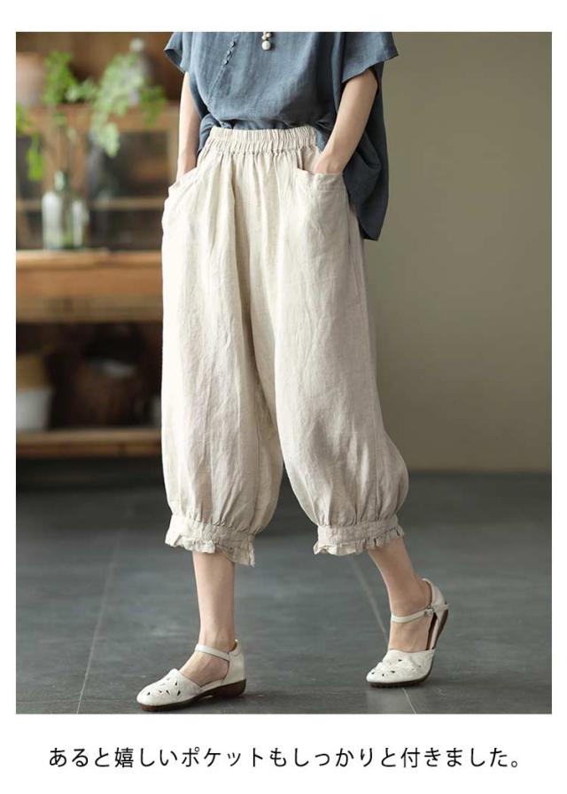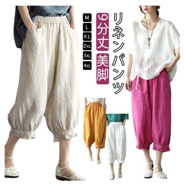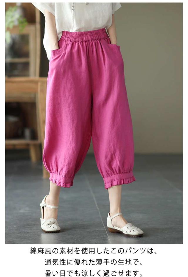 ロング丈 おしゃれ レディース リネンパンツ リラックス 綿麻パンツ リネンパンツ 無地 春夏 美脚 ボトムス ボトムス 綿麻 リネン調 着やせ 9分丈 ゆったり ウエストゴム おしゃれ