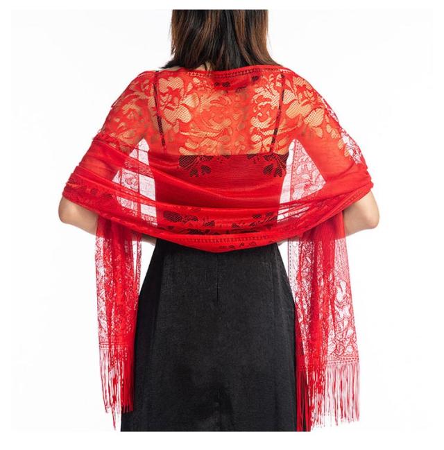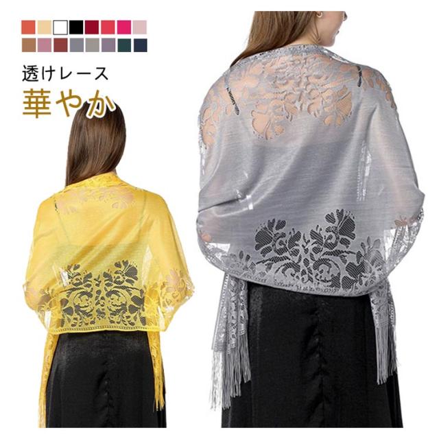 全16色 花嫁 ブライダル ドレス 付き添い ウェディング 夜会 パーティー シーズン 夏 大判レースストール 透かし編み フォーマル 大判レースストール 結婚式 中華風 透け感 披露宴 2025新作 春 涼し気フリンジ付き 秋 冬 レディース オール プレゼント
