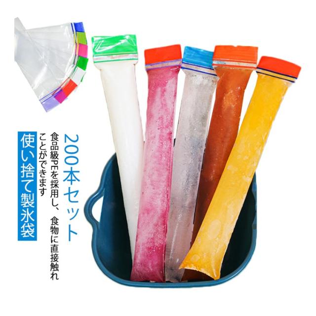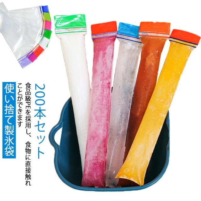 製氷皿 200枚組 細長 袋 製氷袋 製氷 氷キャンディー お酒用氷 使い捨て DIY アイスキャンディーバッグ スポーツ ジュース 水筒用氷 自宅 アイスポップ スティック 収納 夏用 小分け アウトドア 製氷皿 海 おやつ 熱中症対策