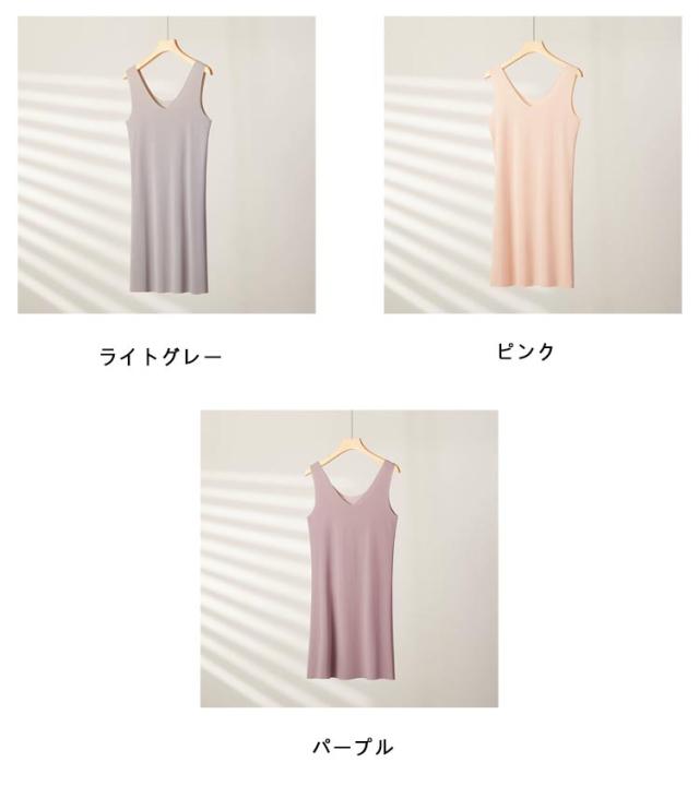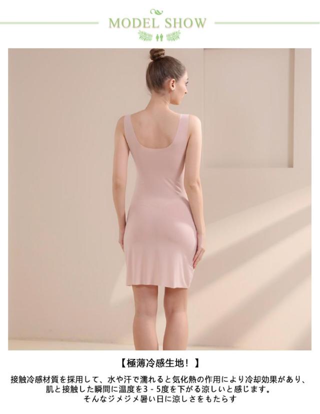 | 極薄冷感!スリップワンピース 【極薄冷感生地!】接触冷感材質を採用して、水や汗で濡れると気化熱の作用により冷却効果があり、肌と接触した瞬間に温度を3−5度を下がる涼しいと感じます。そんなジメジメ暑い日に涼しさをもたらす 【ひんやり爽やかな着心地がずっと続く】吸汗速乾素材でベタつきにくく、抗菌防臭加工付き、汗による服と肌のベタつきを軽減します。乾きやすいから、梅雨の部屋干しにもおススメ! 【まとわりつき、透け防止】しっとりと柔らかな肌ざわりと高い伸縮性で、タイトすぎないシルエットになりました。薄手のワンピやスカートのインに着れば、下着の透けやライン映りを解決します。 | |