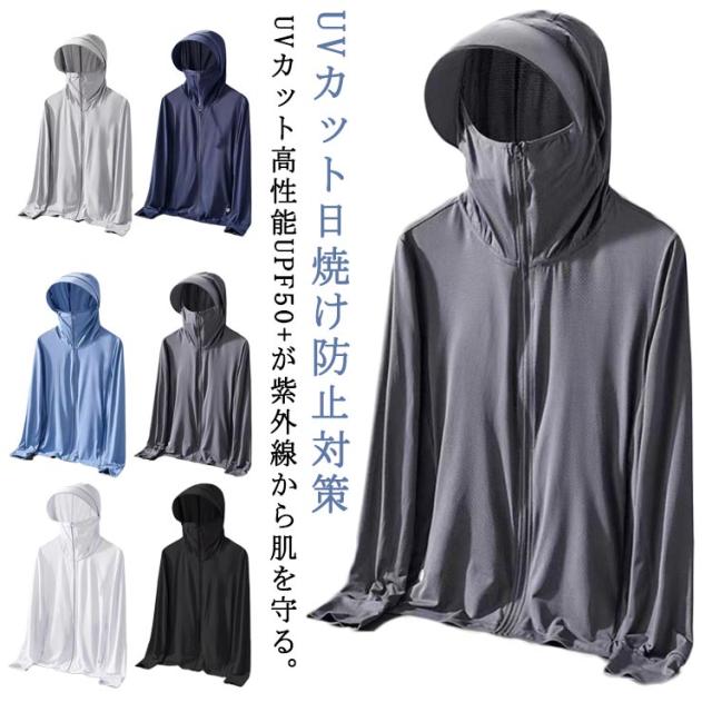 uvカットパーカー ワークマン メンズ フード付き 吸汗速乾 アウトドア 【UVカット&UPF50+】薄手 マスク付き 日焼け止め ジャケット 軽量 涼しい 冷感 トップス ラッシュガード 水着 紫外線対策 長袖 通気性 海 アウター 無地 おしゃれ ラッシュガード スポーツ