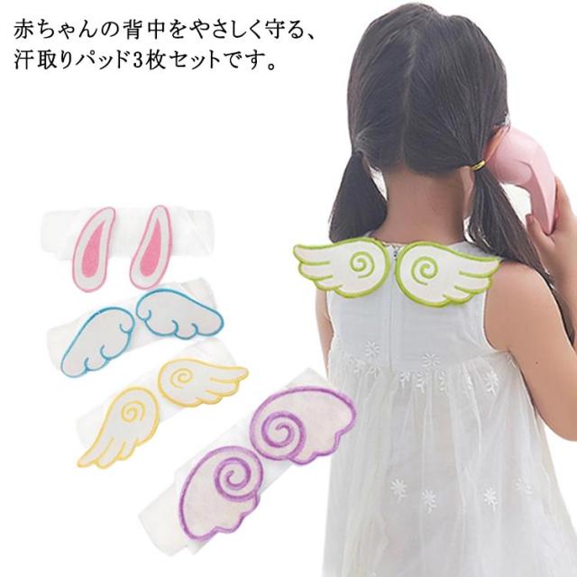 寝汗 赤ちゃん 背中 3枚セット 汗疹対策 天使の羽 子供用 汗取りパッド 汗取りパッド 幼児 新生児 汗とりパッド 女の子 子ども ベビー 洗える 綿100% 可愛い 夏用 出産祝い 男の子 お洒落 インスタ映え