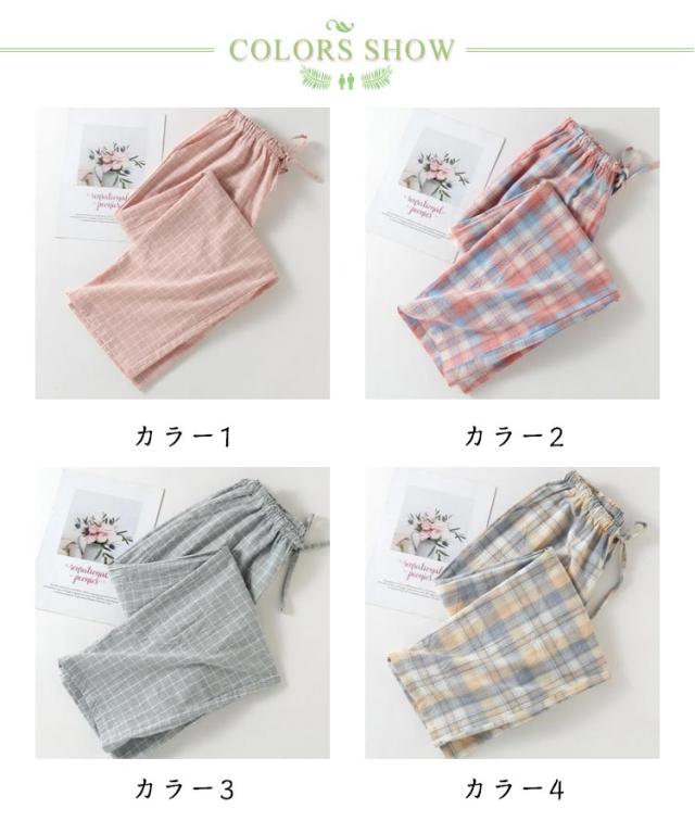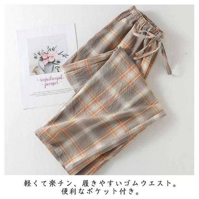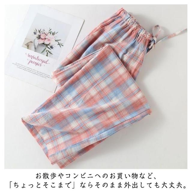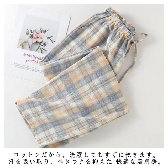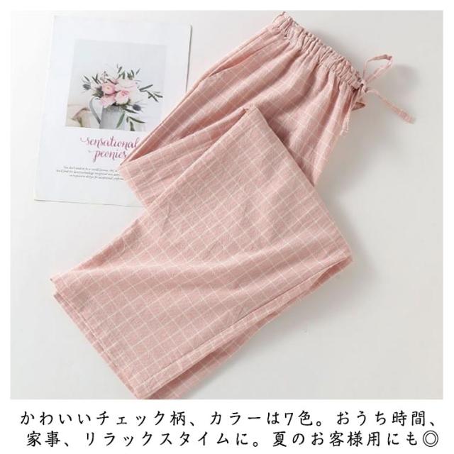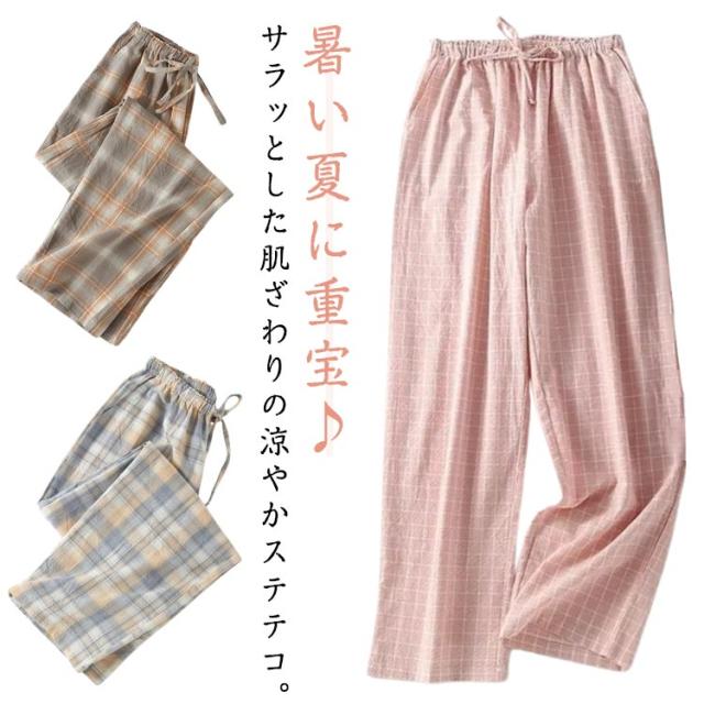 薄手 レディース 綿 ゆったり リラックスパンツ 春夏 ギンガムチェック ダブルガーゼ とろみ ステテコ ルームウェア パジャマ ルームパンツ ワイドパンツ 涼しい 夏パンツ 九分丈 かわいい 部屋着 婦人 ステテコ ロングパンツ