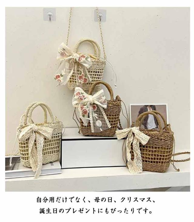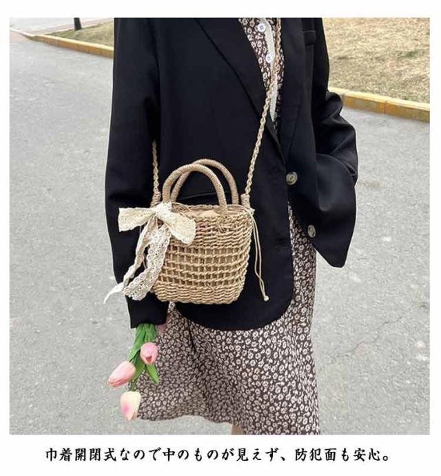 小さめ カゴバッグ ショルダーバッグ レディース レースバッグ 浴衣バッグ バケットバッグ 巾着 斜めがけ ギフト かごバッグ インナーポーチ ハンドバッグ バッグ 大人 軽量 かわいい 手編み ナチュラル かごバッグ プレゼント 花火大会