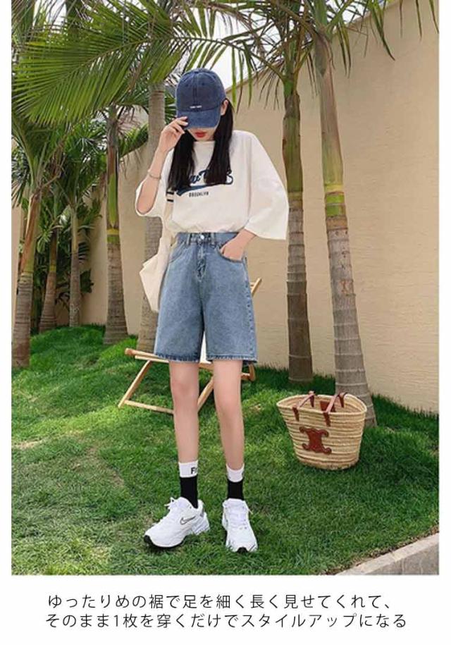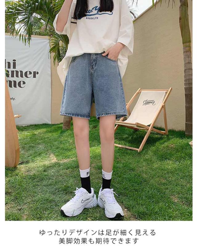 ハーフパンツ デニムパンツ ショートパンツ レディース 五分丈 春 ハイウエスト 短パン ショーパン 韓国ファッション ハーフパンツ 半ズボン おしゃれ ゆったり 着痩せ ストリート 5分丈 大きいサイズ 無地 カジュアル 体型カバー 美脚 ベルト付き ボトムス
