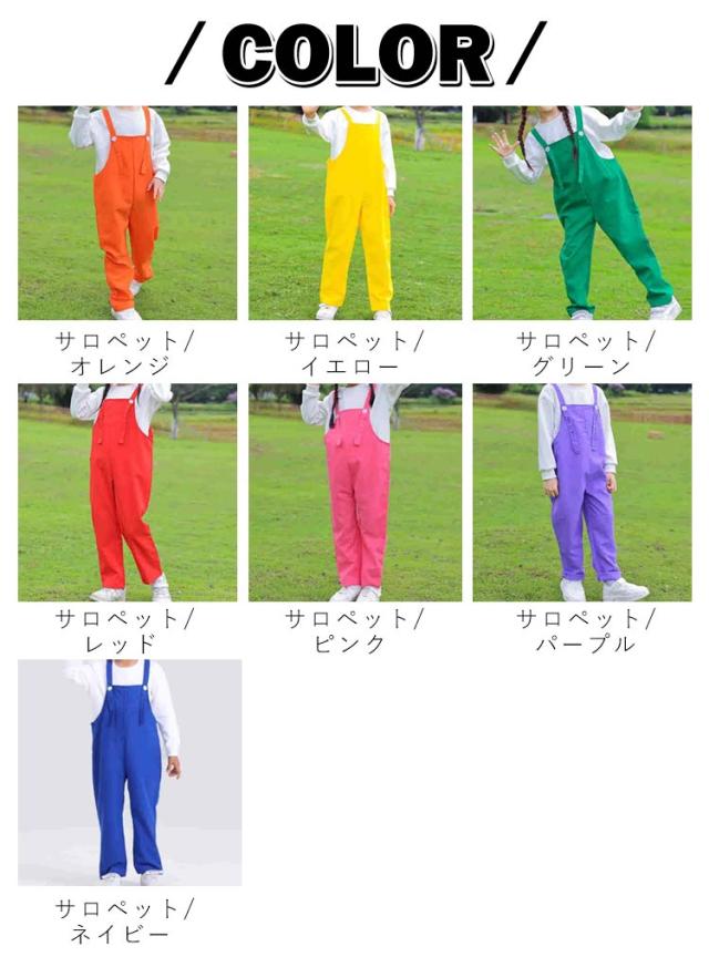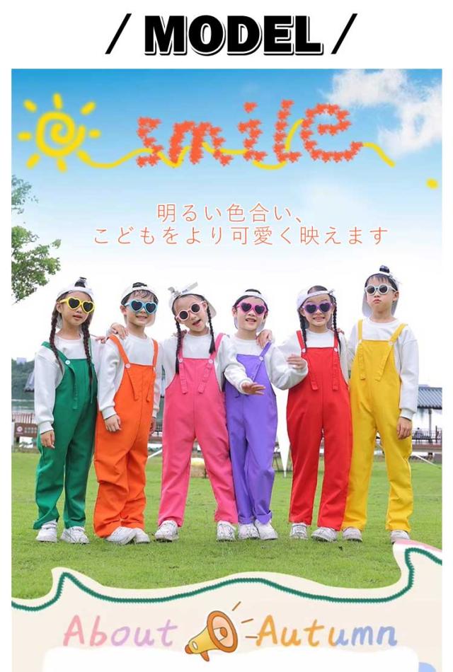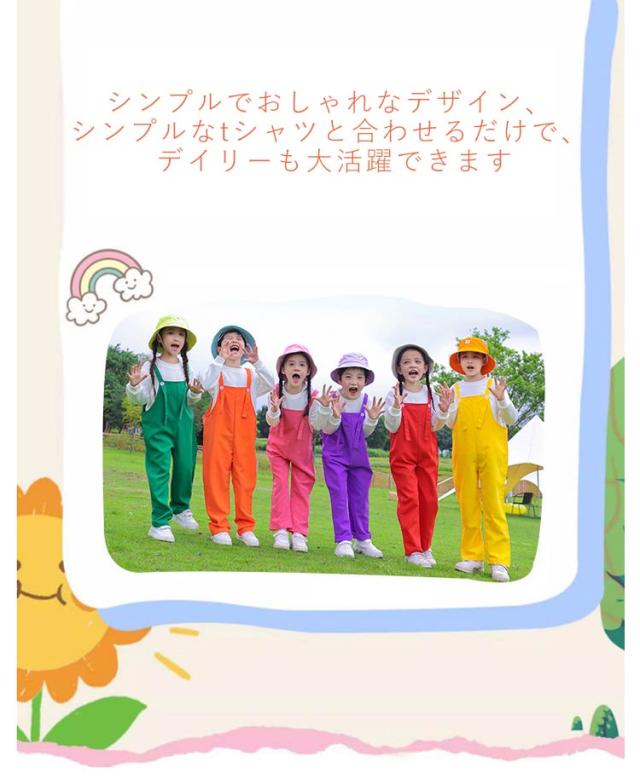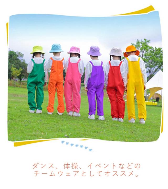 | 110-170cm!発表会や記念写真撮影にピッタリのカラーサロペットパンツ 明るい色合い、こどもをより可愛く映えます。 ダンス、体操、イベントなどのチームウェアとしてオススメ。 シンプルでおしゃれなデザイン、シンプルなtシャツと合わせるだけで、デイリーも大活躍できます。 | |