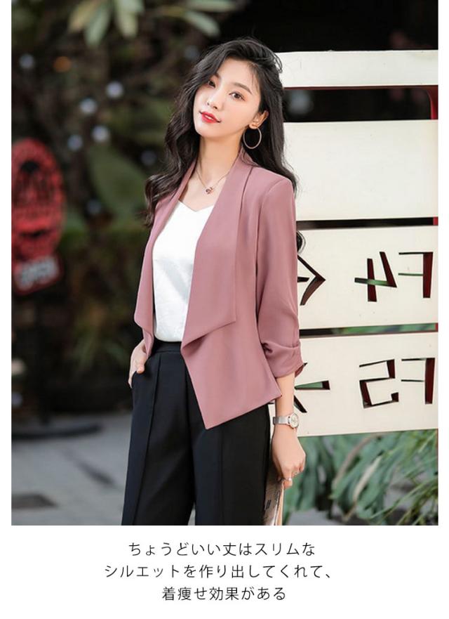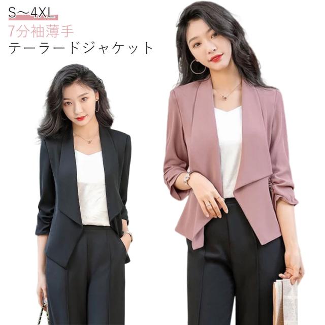 オフィス サマージャケット 大人 羽織り アウター 七分袖 ジャケット 薄手 オフィス テーラードジャケット カジュアル 冷房対策 女性 レディース ビジネス 秋 フォーマル 大きいサイズ 通勤 面接 おしゃれ 謝恩会 春 夏 OL 無地 シンプル