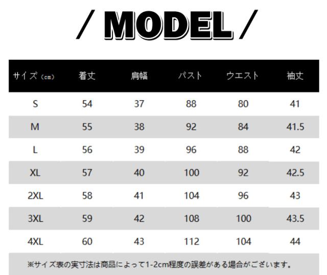 | サイズ | S M L XL 2XL 3XL 4XL |