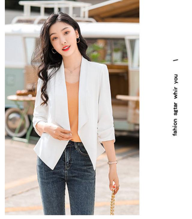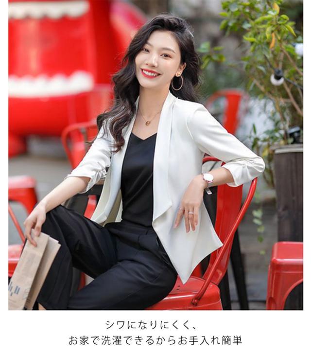| 7分袖薄手テーラードジャケット ボタンなしのスッキリしたデザイン、サラッと羽織れるだけでエレガントな大人女性◎ シワになりにくく、お家で洗濯できるからお手入れ簡単。 ちょうどいい丈はスリムなシルエットを作り出してくれて、着痩せ効果がある。 普段から通勤・フォーマルなどオールマイティ活躍できる1枚、春夏の季節にピッタリの生地感。 | |