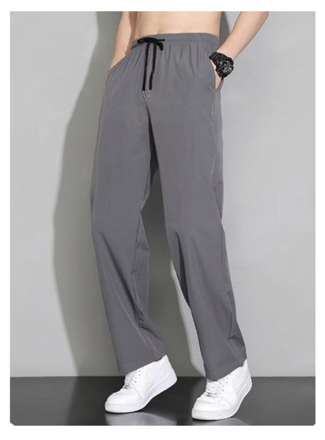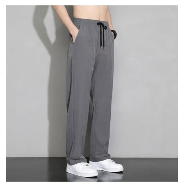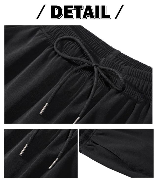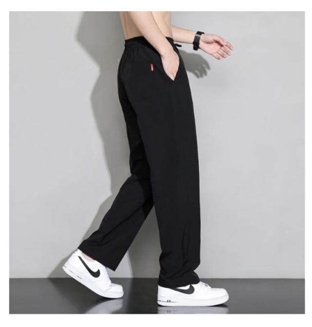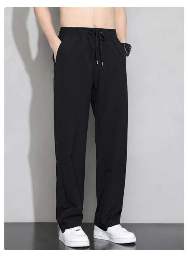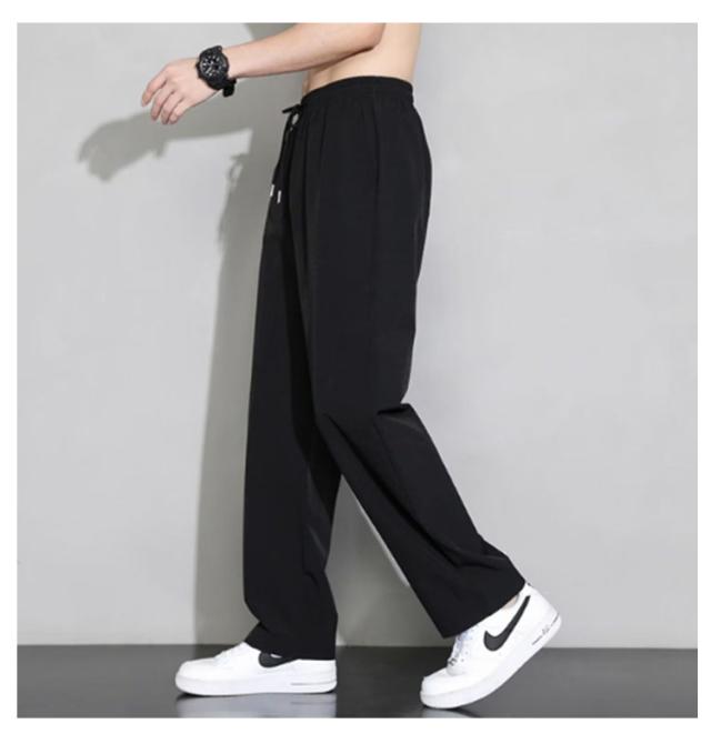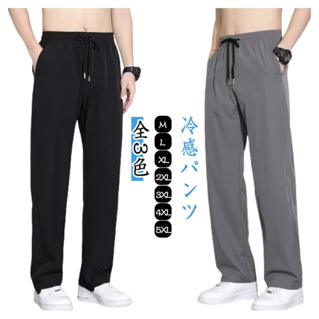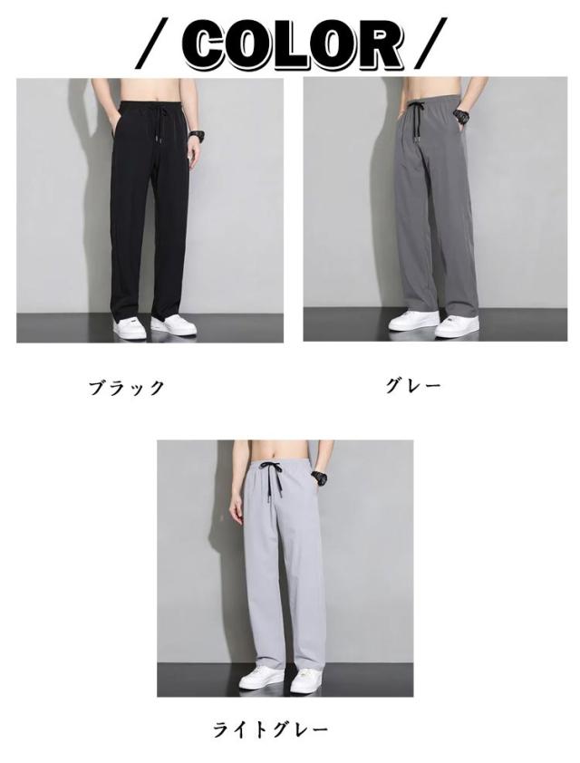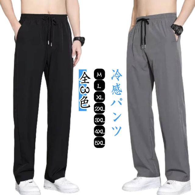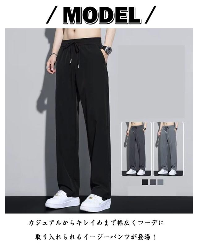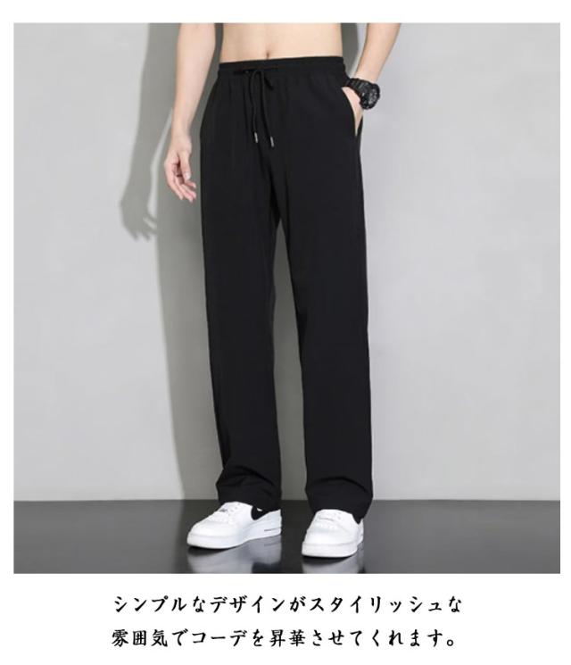 ゴルフ 夏 冷感パンツ アイスシルクパンツ ワイドパンツ 薄手 ウエストゴム 落ち感 スラックス メンズ ストレートパンツ スポーツ 体型カバー カジュアル ロングパンツ 長ズボン イージーパンツ 軽い 冷感パンツ 黒