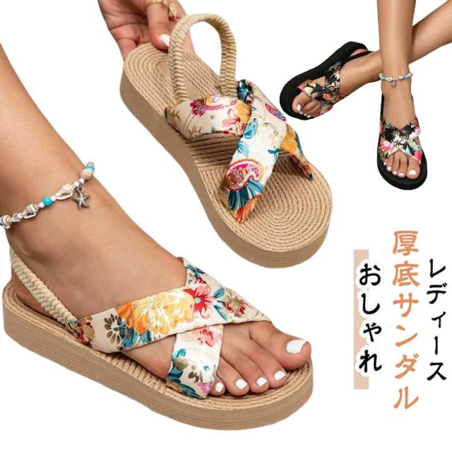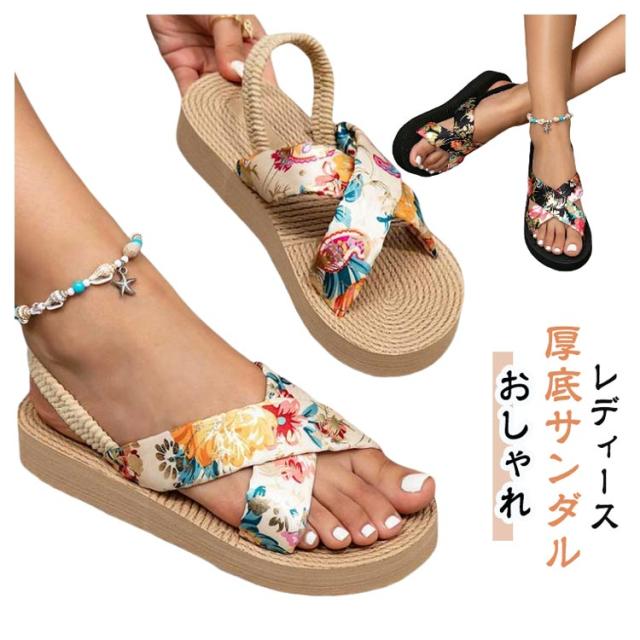 コンフォートシューズ レディース 厚底 クロスベルト おしゃれ バックベルト ビーチサンダル ストラップ 歩きやすい お祭り ビーチサンダル 花火大会 浴衣 甚平 海辺 お出かけ リゾート 旅行
