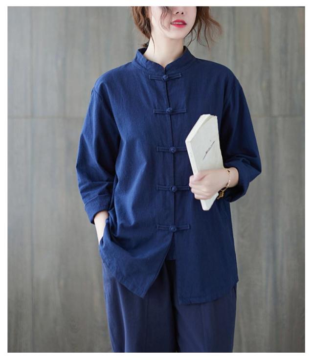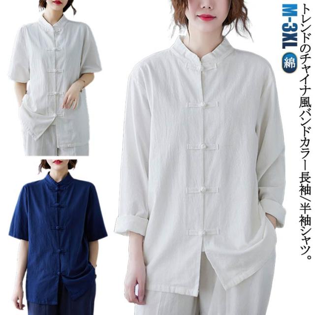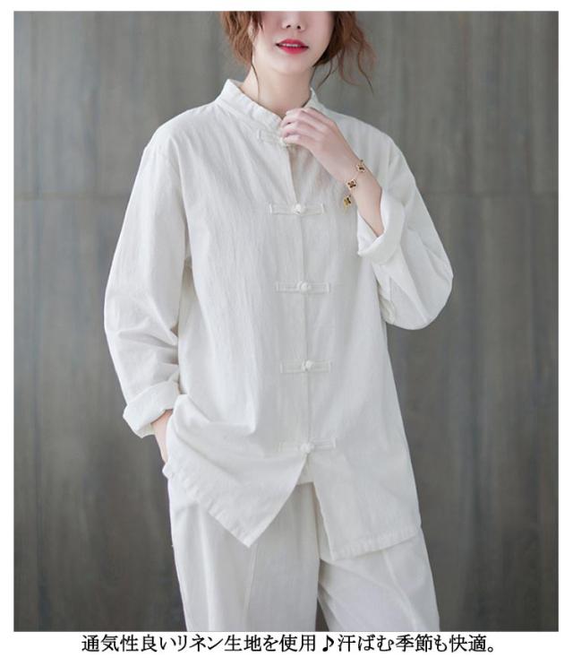 チャイナ風シャツ 長袖 レディース ブラウス トップス シャツブラウス チャイナブラウス チャイナボタン チャイナ風シャツ 綿 羽織り ゆったり カジュアル おしゃれ シンプル 無地