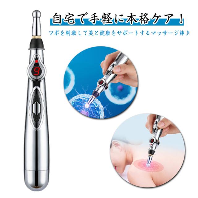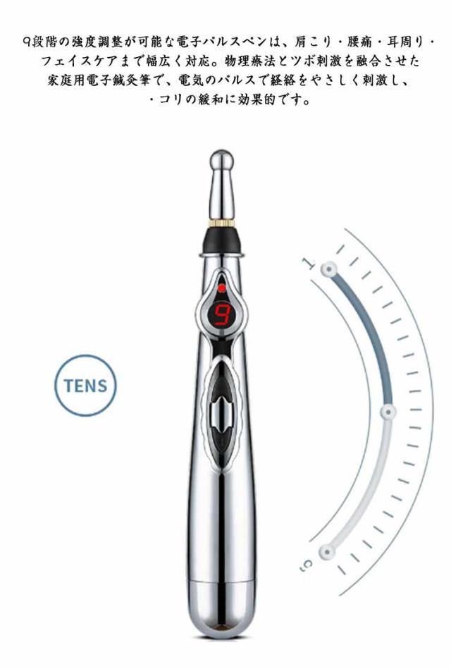 マッサージ棒 健康管理 物理療法器 ツボ押し棒 マッサージ 家庭用電子鍼灸筆 9段階調整可能 ペン パルスペン 経穴 ツボ 電子針 電気針 経絡筆 保健用品 美顔 美肌 健康グッズ スティック 2つの先端 ダイエット 肩こり 耳 腰