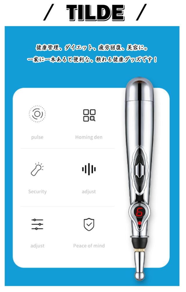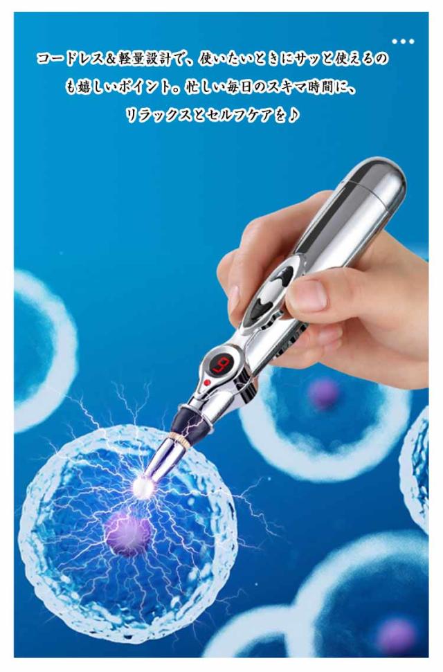 | 自宅で手軽に本格ケア! ツボを刺激して美と健康をサポートするマッサージ棒♪ 9段階の強度調整が可能な電子パルスペンは、肩こり・腰痛・耳周り・フェイスケアまで幅広く対応。物理療法とツボ刺激を融合させた家庭用電子鍼灸筆で、電気のパルスで経絡をやさしく刺激し、・コリの緩和に効果的です。 3種類の交換ヘッド付きで、用途や部位に応じた使い分けが可能。先端を変えることで、美顔・美肌ケアにもぴったり。顔まわりのむくみやたるみにもアプローチでき、リフトアップ効果も期待◎ コードレス&軽量設計で、使いたいときにサッと使えるのも嬉しいポイント。忙しい毎日のスキマ時間に、リラックスとセルフケアを♪ 健康管理、ダイエット、疲労回復、美容に。 一家に一本あると便利な、頼れる健康グッズです! | |