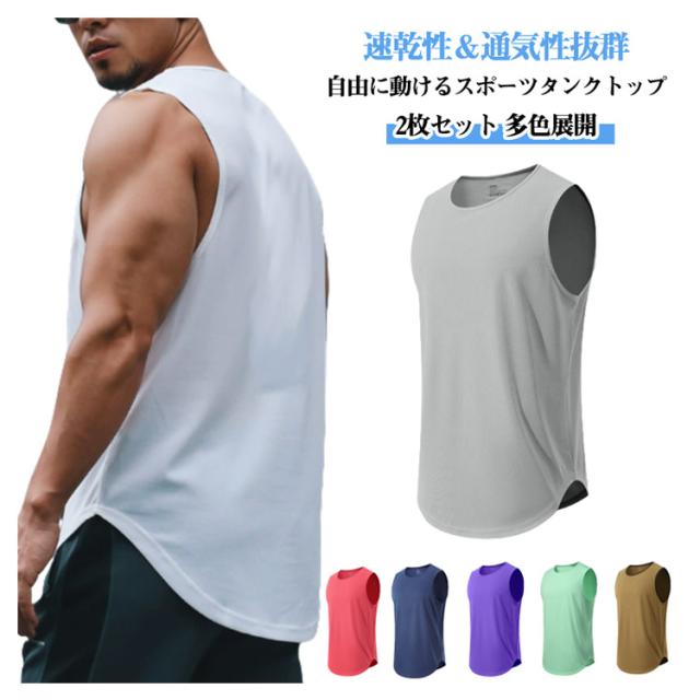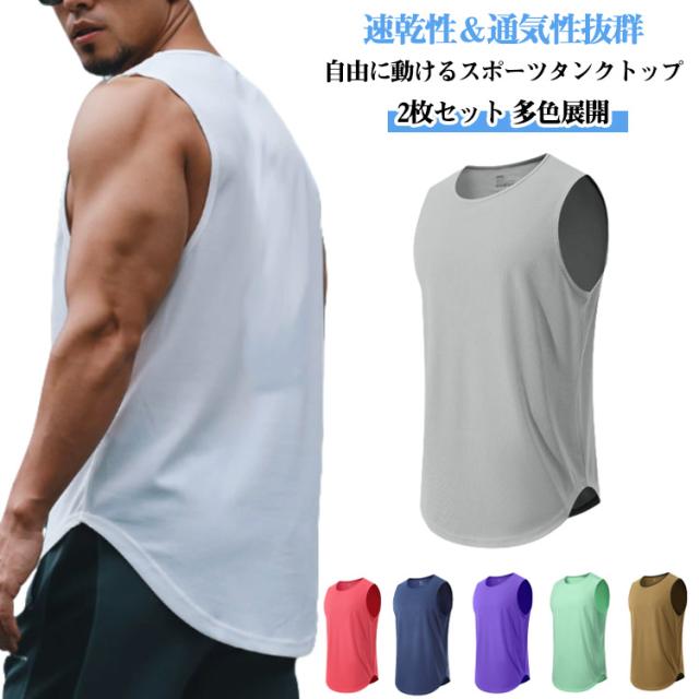 ウェア タンクトップ ジム ノースリーブ メンズ 筋トレ 2枚セット タンク フィットネス サッカー スポーツウェア 吸汗 トレーニングウェア 運動着 レディース 2枚セット 涼しい メッシュ 通気性に優れた生地