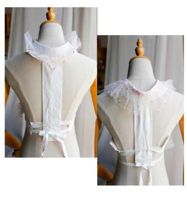 | 2wayのレース仕立衿 オシャレで上品なレースエッジデザイン、着姿を盛り上げてくれます。 仕立衿は針も糸も使わずに簡単に衿のかけ替えができ、 縫いつける必要がありません、長襦袢の衿にかぶせるだけで。 半衿を長襦袢に縫い付ける時間が無い場合に大活躍!半衿をつけたりはずしたりするのが面倒な方に大好評。 お出かけする時の着物だけでなく、卒業式や成人式、振袖姿などの華やかな装いにもOK! フォーマルから単衣の長襦袢まで、普段着から礼装までお使いいただけます。 | |