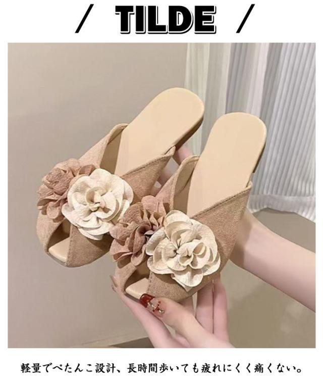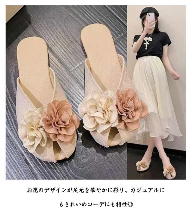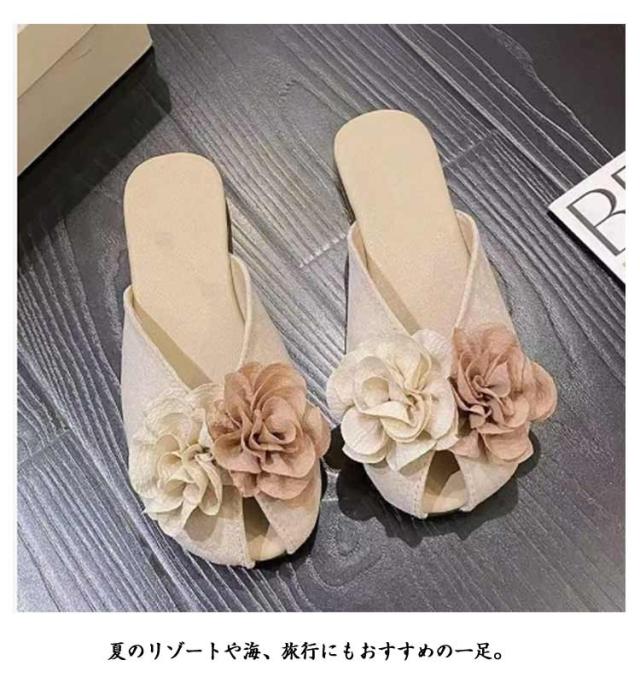 フラワー すべりにくい ミュール ペタンコ 送料無料 きれいめ ローヒール 痛くない 軽量 お花 レディース 歩きやすい つっかけ 送料無料 スリッパ おしゃれ ビーチサンダル 楽ちん 軽い 海 痛くない 可愛い 夏