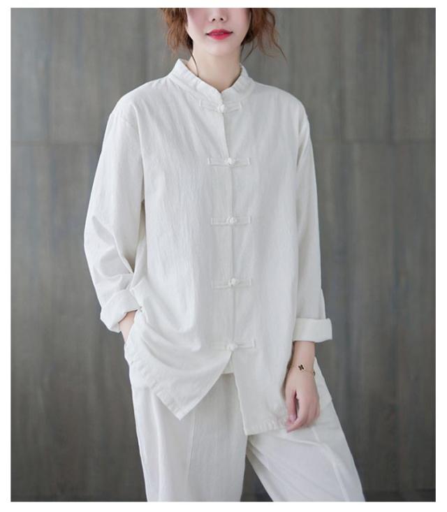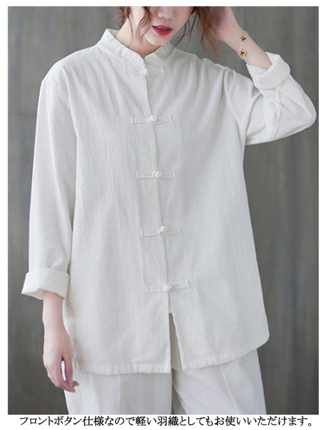 チャイナボタン チャイナ風シャツ シャツブラウス レディース ブラウス 綿 チャイナブラウス チャイナ風シャツ 立ち襟 トップス 羽織り ゆったり カジュアル おしゃれ シンプル 無地