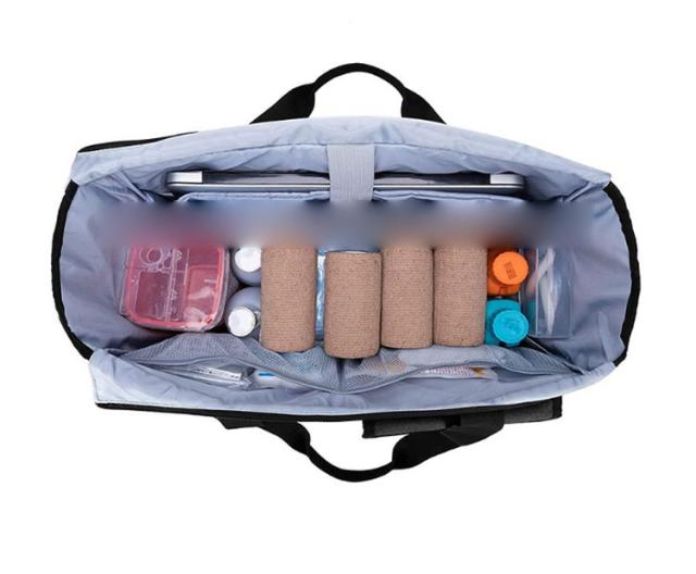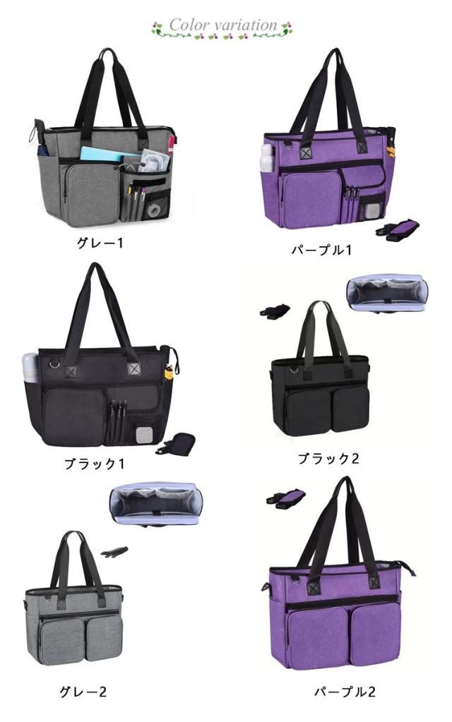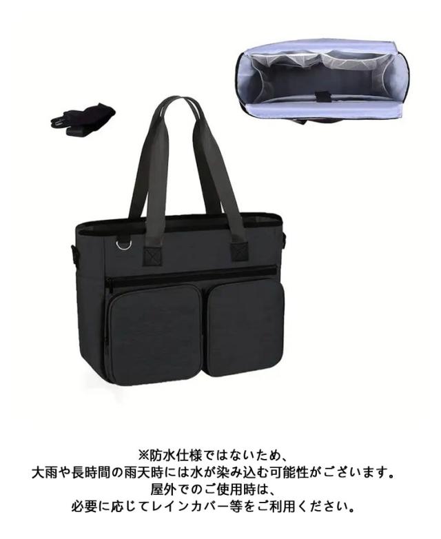| 訪問介護用バッグ・トートバッグ 軽量/大容量/多機能/撥水加工/ショルダー A4サイズ楽々収納 驚くほど軽くて、 たっぷり収納できる万能バッグ! 重量:約620g 長さ調整可能なショルダーベルト付き A4書類が楽々入る大容量設計便利さ抜群! 15.6インチのノートパソコンも収納可能 プロも満足する仕様! 軽さと多機能性を両立 ●正面ポケット A4サイズや書籍、 日用品がたっぷり入る広々スペース! ●サイドポケット 傘や水筒がスッキリ収まるデザイン ●後ろ面ポケット 書類や病歴ファイルの収納に (A4サイズ可) ●4つのメッシュポケット 聴診器、スプレーボトル、 ノートなどの整理に最適 ●大容量収納 A4サイズや書籍、 日用品がたっぷり入る広々スペース! ●ノートPC保護層 15.6インチノートパソコンも安心収納。 落下防止ストラップ付き 撥水加工とチャック式開口で、雨の日の訪問も安心設計 チャック式開口部 ●開口部の両サイドにはファスナーがないため、 強い雨にはご注意ください。 ●撥水加工 撥水加工を施したナイロン生地で、 軽い雨や水はね程度であれば中身をしっかりガードします。 ※防水仕様ではないため、大雨や長時間の雨天時には水が染み込む可能性がございます。屋外でのご使用時は、必要に応じてレインカバー等をご利用ください。 | |