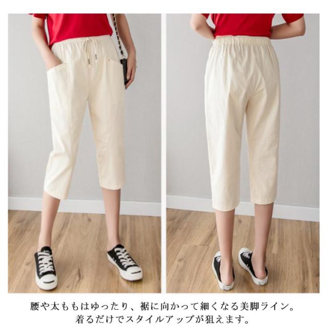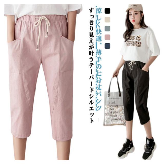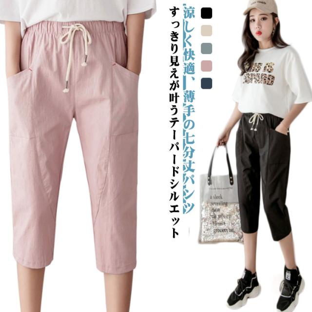 クロップドパンツ スリムパンツ 薄手 春夏 テーパードパンツ サマーパンツ ハイウエスト 大きいサイズ ポケット付き 体型カバー ゆったり レディース テーパードパンツ 無地 通勤 美脚 リラックス カジュアル