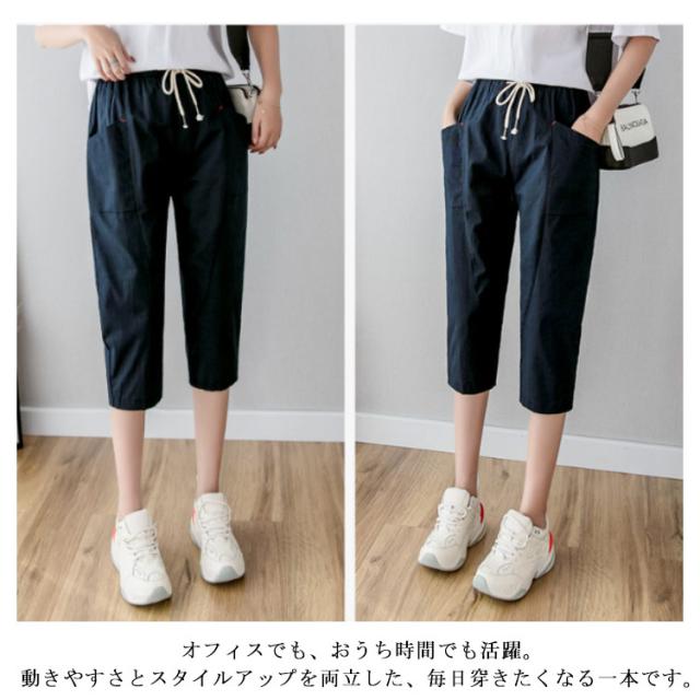 | 涼しく快適、薄手の七分丈パンツ すっきり見えが叶うテーパードシルエット 通気性に優れた軽やかな素材で、ムレにくく快適な穿き心地。暑い季節の通勤やお出かけにも最適です。 腰や太ももはゆったり、裾に向かって細くなる美脚ライン。着るだけでスタイルアップが狙えます。 ゴム入りのウエストは締め付け感がなく、脱ぎ履きもラクラク。体型を選ばず幅広い世代におすすめです。 両サイドに大きめポケット付きで機能的 スマホや小物をさっと収納できるポケット付き。ちょっとした外出や通勤にも便利な仕様です。 合わせるトップスを選ばない無地の定番カラー。きれいめにもカジュアルにもマッチします。 オンオフ問わず毎日使える万能パンツ オフィスでも、おうち時間でも活躍。動きやすさとスタイルアップを両立した、毎日穿きたくなる一本です。 | |