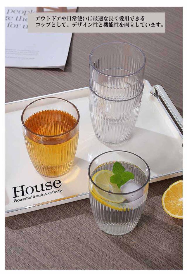 ストライプ プラスチック 4個セット コップ 300cc グラス おしゃれ 300cc コップ トライタン 食洗器対応 割れないタンブラー タンブラー 北欧 お冷 お水 業務用 家庭用 子供 割れないガラス 食器 クリア 茶色 グレー かわいい スタッキング 積重ね キャンプ BBQ