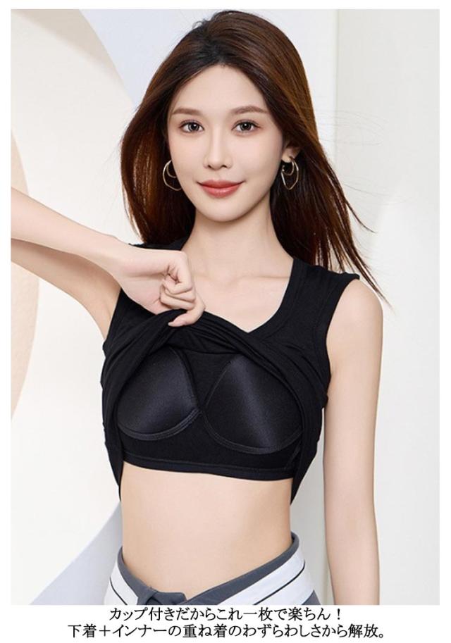 ブラトップ インナー 見せるインナー カップ付き ブラトップ カップ付きインナー ノンワイヤー タンクトップ 脇肉カバー タンクトップ カップイン トップス ルームウェア 部屋着 レイヤード キャミ