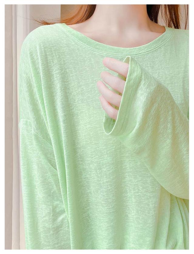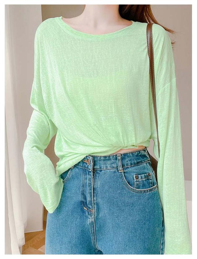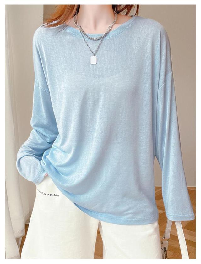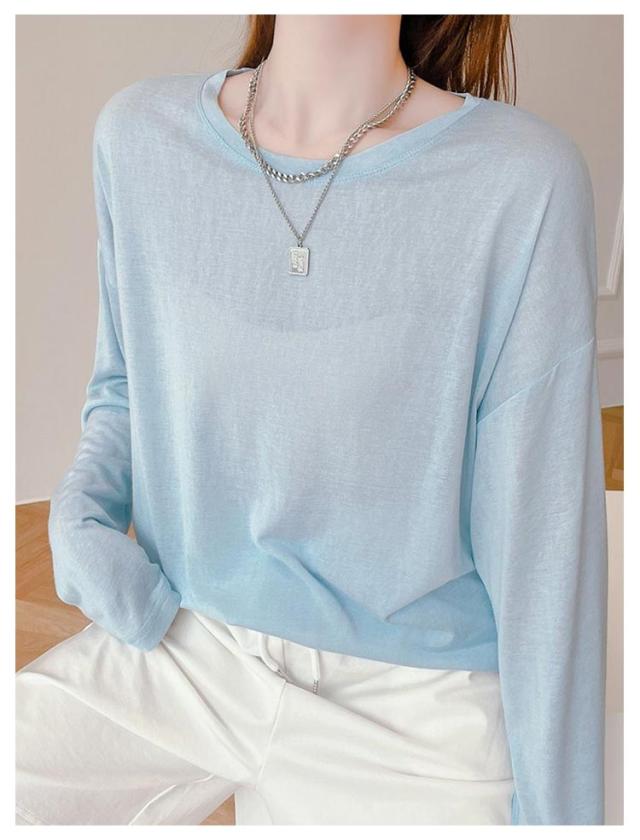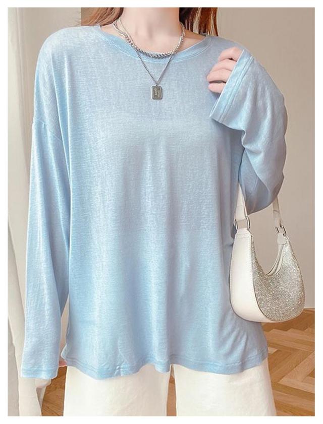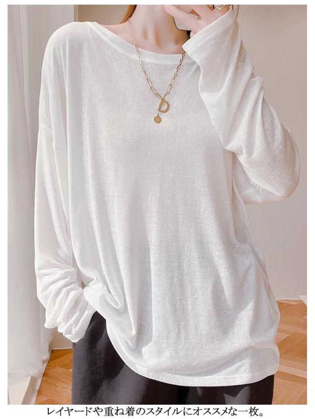 シアートップス 薄手 クルーネック シアートップス レディース カットソー 春 トップス 夏 インナー 接触冷感 長袖tシャツ 涼感 日よけ 無地カットソー 紫外線対策 重ね着 涼しい 大きサイズ