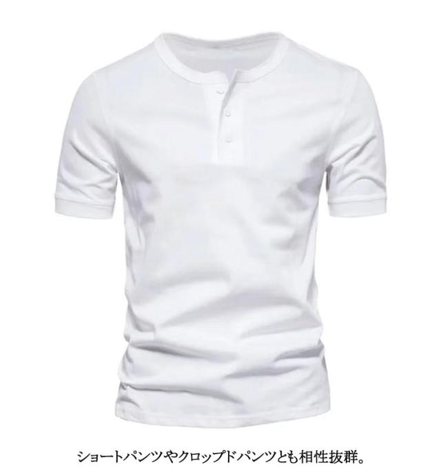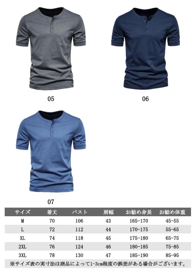 ヘンリーネック 無地 グレー 半袖 メンズ 半袖Tシャツ 30代 50代 ブルー 黒 カットソー カジュアル 春 夏 紳士 40代 白 Tシャツ Tシャツ 薄手 M L XL 2XL 3XL