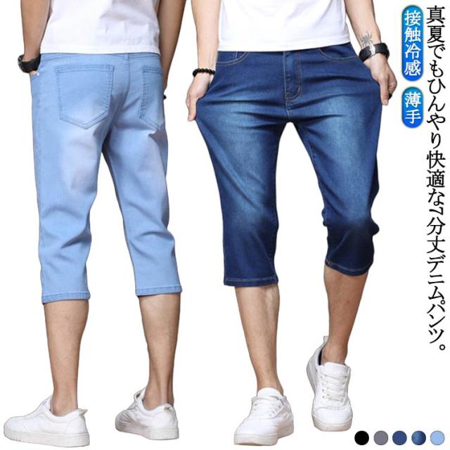 | 真夏でもひんやり快適な7分丈デニムパンツ。 ストレッチが効いた伸縮自在の生地 | |