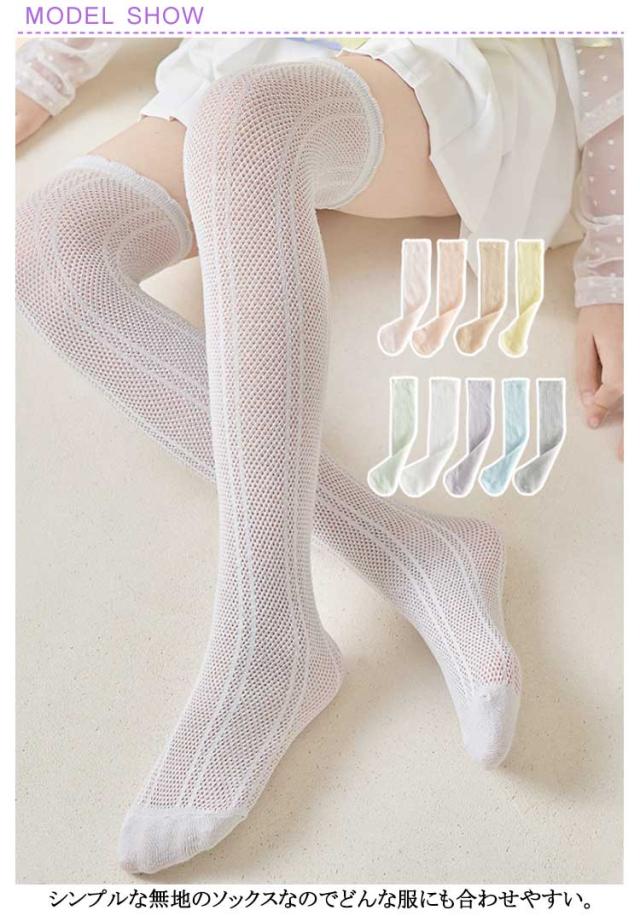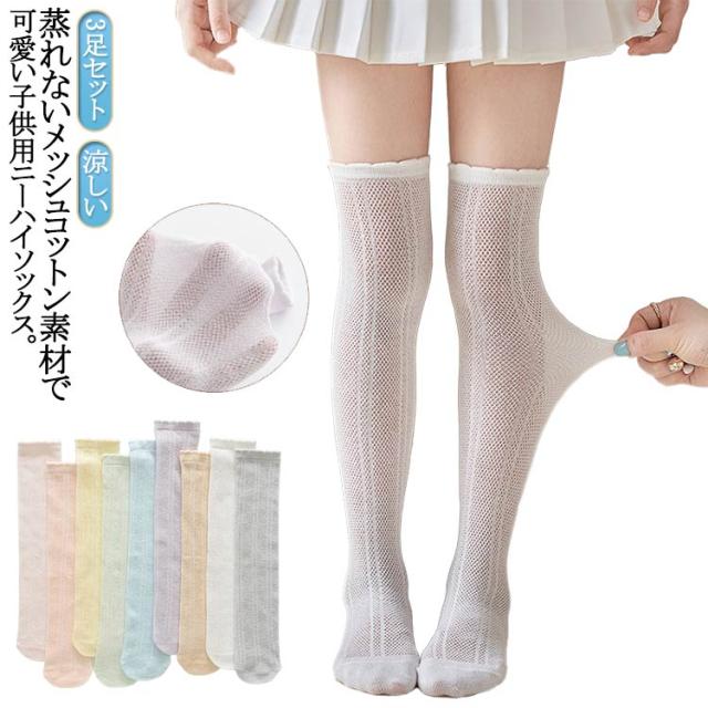 靴下 3足組 靴下 キッズ 可愛い 女の子 ニーハイソックス ハイソックス 夏 ソックス 涼しい 膝上ハイソックス メッシュハイソックス 蒸れない ジュニア 夏 フリル おしゃれ 80cm 90cm 100cm 110cm 120cm 130cm 140cm