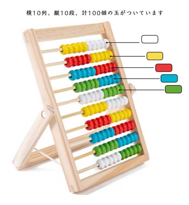 | 触って・見て、感覚的・視覚的に数字に触れ合える100玉そろばんです。 視覚的な刺激と指の感覚によって脳の発達を促してくれます。 数がわかりやすいように数字がついています。 横10列、縦10段、計100個の玉がついています。 1列ごとにカラフルな色でわかれています。 手になじむ、ぬくもりのある木の素材を使っています。 足し算、引き算、掛け算、割り算はもとより時間の計算も理解できます。 卓上に置いても邪魔にならないコンパクトサイズで、 持ち運びにも便利です。 | |