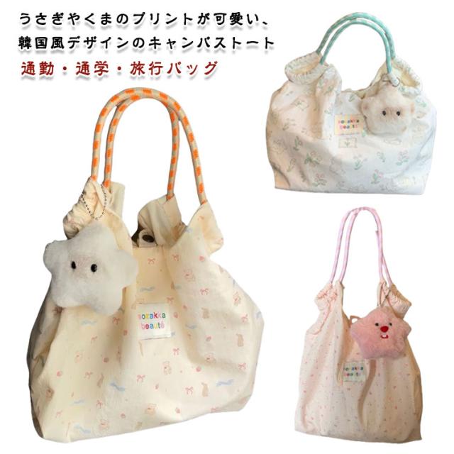 トートバッグ 学生バッグ 女の子 アニマルプリント クマ柄 ウサギ柄 ハンドバッグ 手提げバッグ かわいいバッグ トートバッグ 韓国風 カジュアルバッグ 肩掛けバッグ 通勤 通学 旅行バッグ 女子高生 ナチュラル