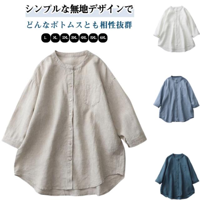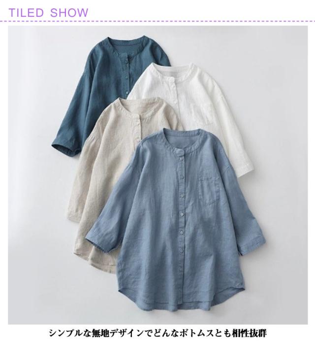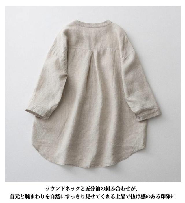リネン風 レディース シャツ トップス 五分袖 ゆったり 丸首 夏用 薄手 体型カバー ナチュラル カジュアルシャツ 夏服 シャツ オーバーサイズ シンプル 楽ちん 着心地いい 普段着