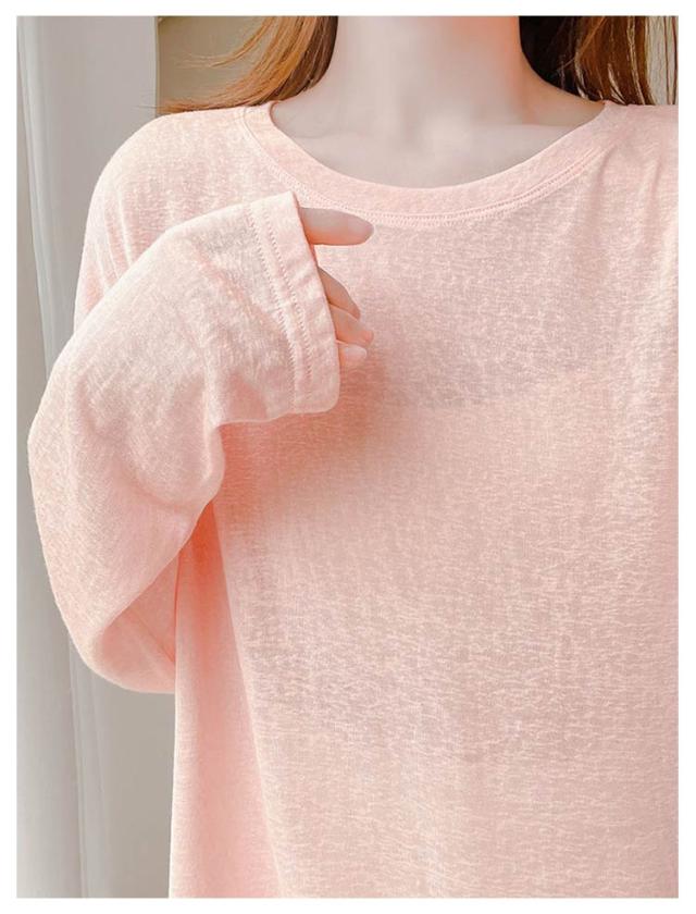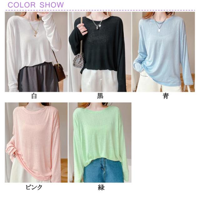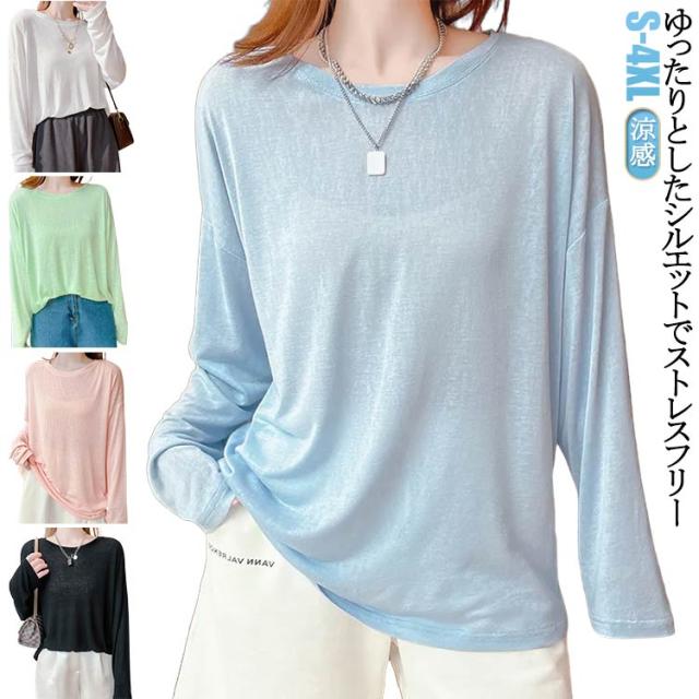 涼感 シアートップス トップス クルーネック レディース カットソー シアートップス 薄手 夏 春 接触冷感 インナー クール冷感 長袖tシャツ 無地カットソー 紫外線対策 重ね着 涼しい 大きサイズ