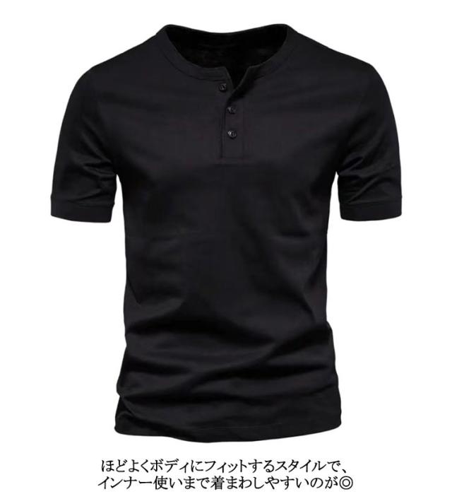 カットソー 無地 ヘンリーネック 春 メンズ 半袖Tシャツ 紳士 カーキ 夏 白 ブルー グレー Tシャツ 黒 30代 40代 50代 Tシャツ カジュアル 薄手 M L XL 2XL 3XL