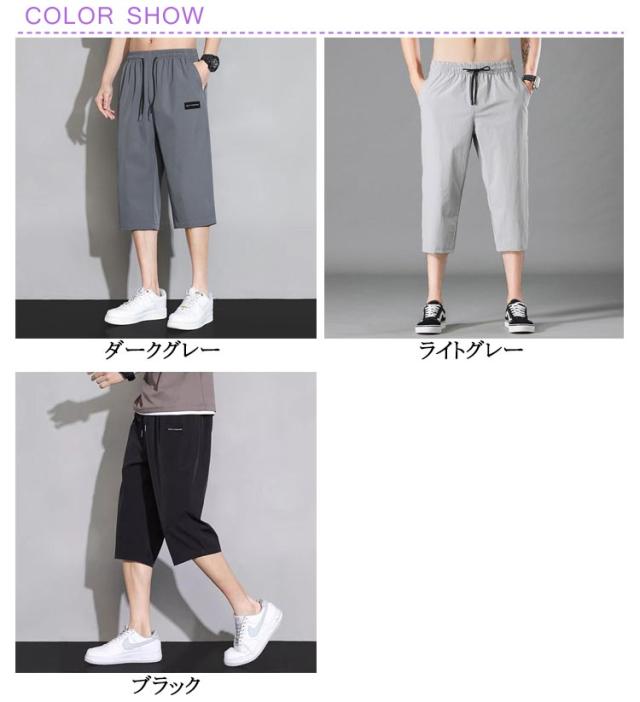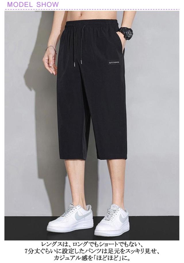 春 夏 ゆったり クロップドパンツ 涼しい カジュアル 七分丈パンツ チノパンツ 薄手 ストレート 送料無料 ひざ下 ショートパンツ リラックス メンズ 春 ウエストゴム おしゃれ 接触冷感 大きいサイズ スポーツ