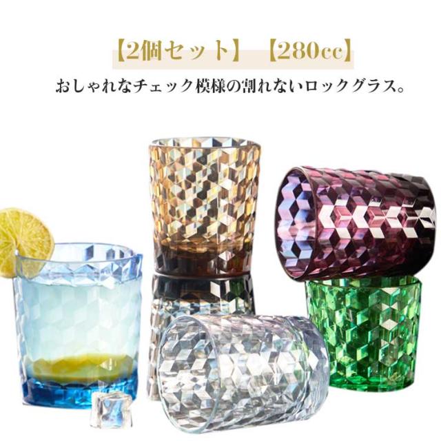 | おしゃれなチェック模様の割れないロックグラス。【2個セット】【280cc】 豊かなカラーバリエーションから、お好みのアイテムをお選びいただけます。 トライタン素材を使用しているので、ガラスと比べても見劣りしないクリアな輝きと光沢感があり、曲げや耐久性が強いのが特徴です。 落としても割れにくく、BPAフリーなのでお年寄りや子供にもおすすめ。 アウトドアや日常使いに最適な長く愛用できるコップとして、デザイン性と機能性を両立しています。 収納時は重ねてスタッキング可能です | |