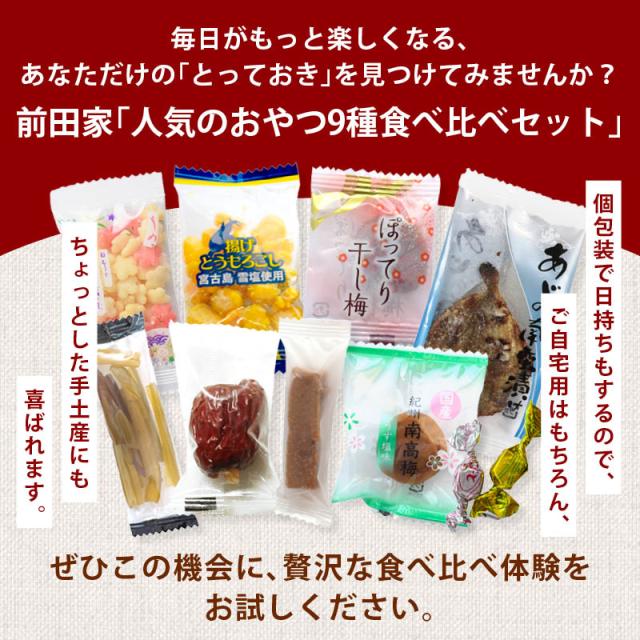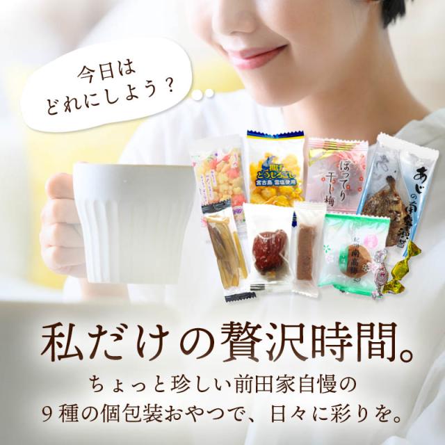 前田家 人気のおやつ9種食べ比べセット 個包装 合計230g バラエティパック お菓子 おつまみ お茶請け バラエティセット アソート メール便 送料無料 MAEDAYA