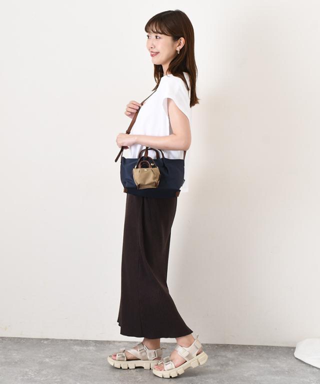 上品な光沢のあるナイロンと、柔らかな合皮の異素材コンビが魅力