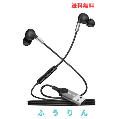 ◆商品名:DuKabel 2M USB イヤホンマイク USBA ステレオ ヘッドセット 有線 両耳 音量調節 全指向性 人間工学 カナル型 ps4/ps5/pc/ノートパソコン
