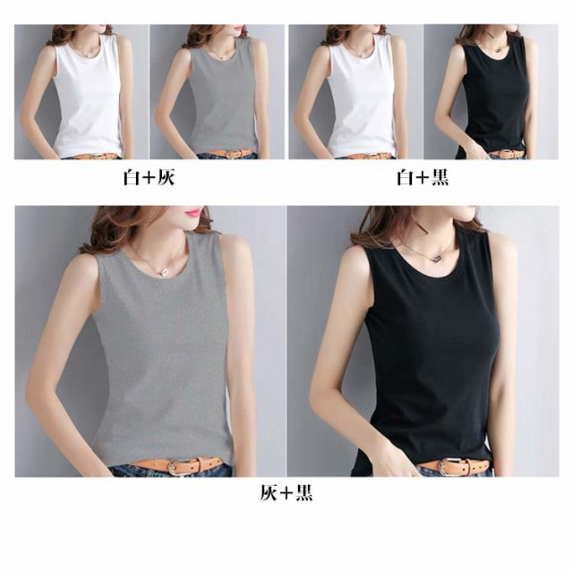 タンクトップ ゆったり インナー タンクトップ ノースリーブ 白 レディース レイヤード 黒 大きいサイズ ラウンドネック 体型カバー 肌着 下着 大きいサイズ 重ね着 2枚セット 灰 レイヤード 春夏 秋 無地 シンプル おしゃれ
