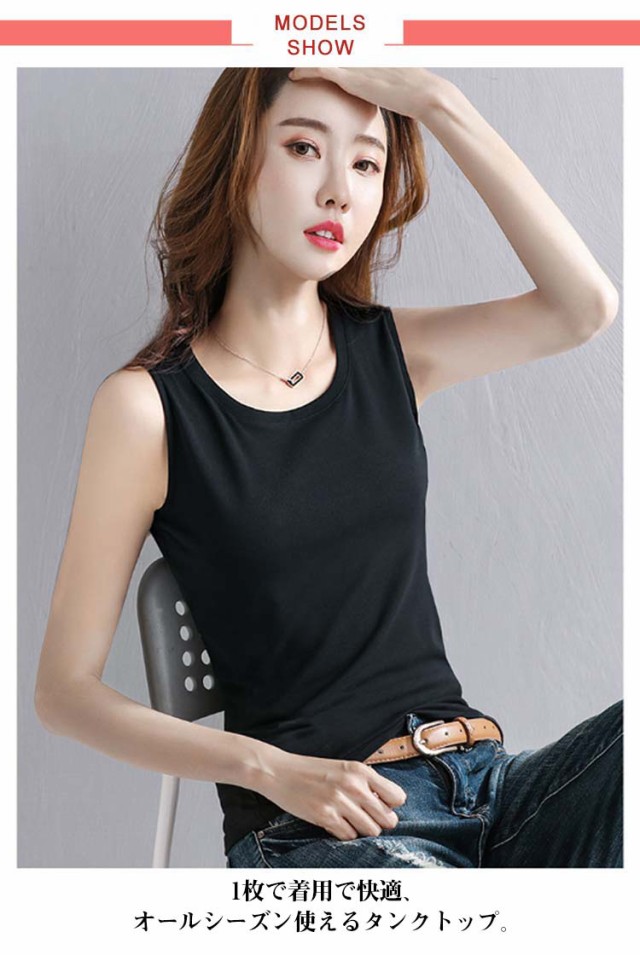| シンプルでファッショ感満点タンクトップ! 広めの幅でブラ紐をしっかり隠すタンクトップ! トレンドのシアーブラウスもこれなら安心して着用できる♪ 脇下もしっかりフィットし、どんな姿勢でもしっかりカバー。 インナーとしてはもちろん。ヨガ、ライトスポーツなど普段使いにも役立ちます♪ 1枚で着用で快適、オールシーズン使えるタンクトップ。 | |