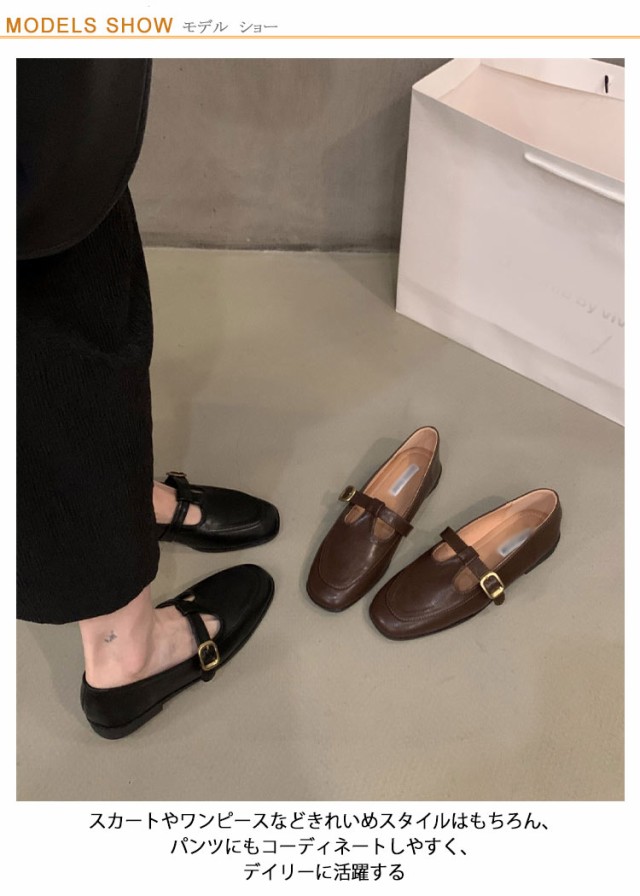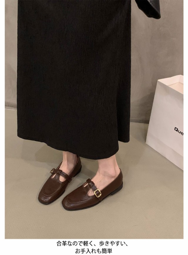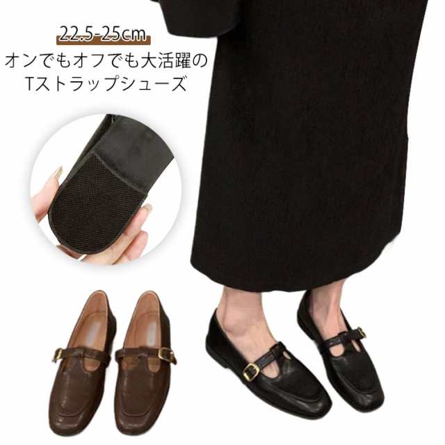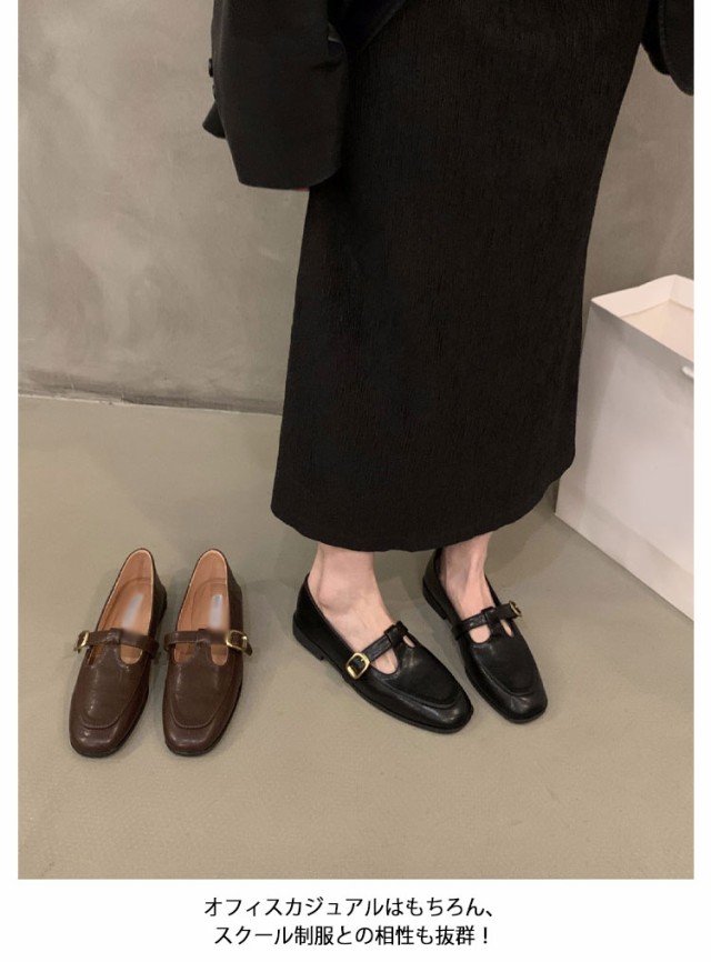 フラットシューズ Tストラップシューズ スクエアトゥ ローファー パンプス オフィス 靴 レトロ puレザー 革靴 女性 ぺたんこ 森ガール シューズ エレガント フラットシューズ 外反母趾 ラウンドトゥ