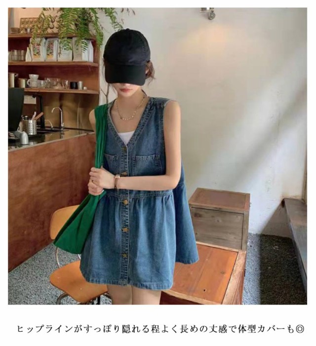 デニムベスト レディース トップス デニム ベスト ジレ ロング Vネック ノースリーブ デニムワンピース デニム ミニワンピ ゆったり 重ね着 レイヤード ロングベスト デニムミニワンピース 春 秋 大人 可愛い おしゃれ カジュアル 無地 【送無】